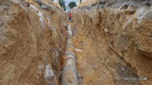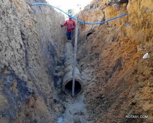 A obra, executada durante os últimos três meses, envolveu cerca de 15 trabalhadores e de uma máquina retroescavadeira, que atuaram em uma área de 120 metros de comprimento e cerca de dois metros de profundidade.
