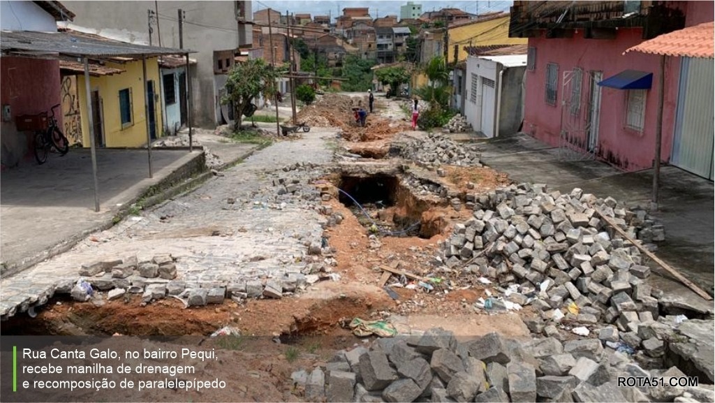 - Rua Canta Galo, no bairro Pequi, recebe manilha de drenagem e recomposição de paralelepípedo