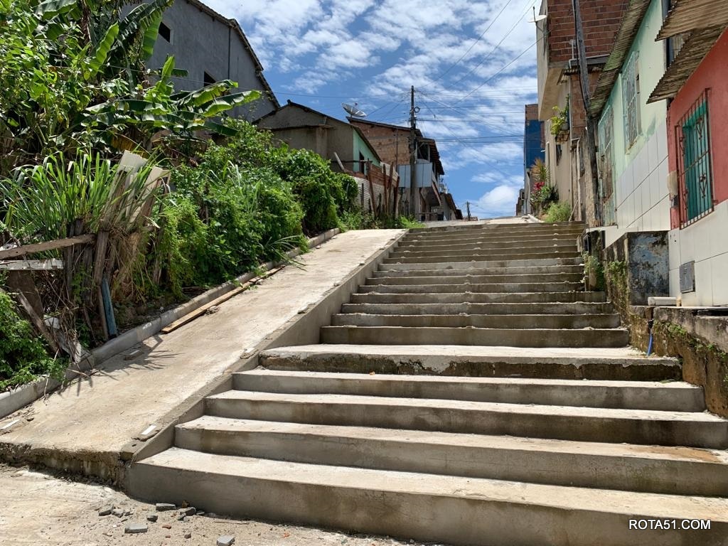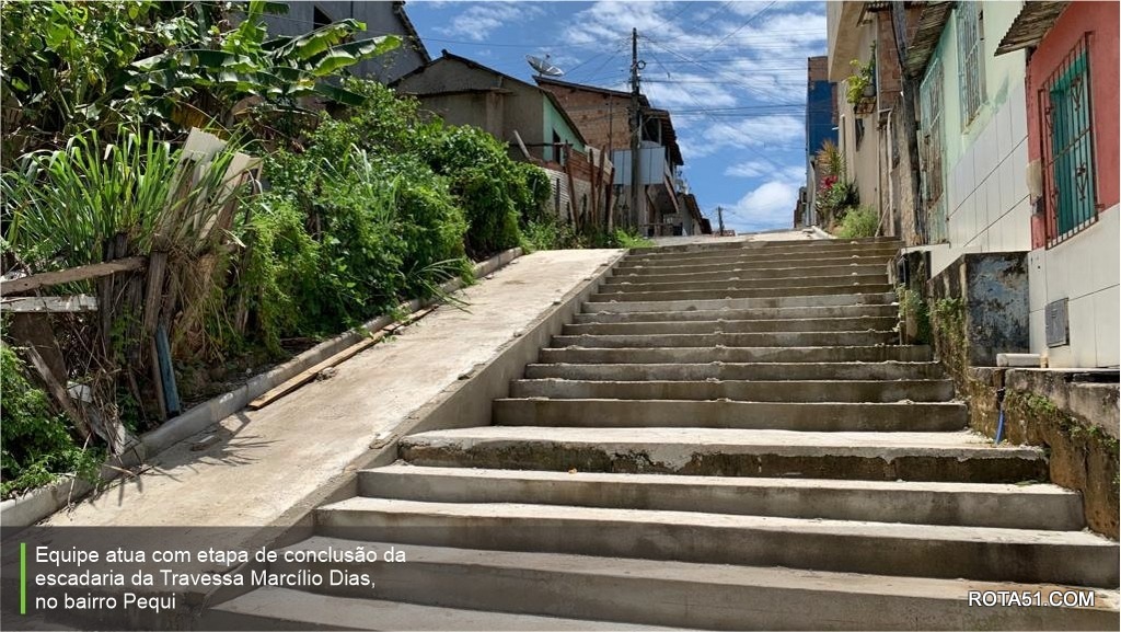 - Equipe atua com etapa de conclusão da escadaria da Travessa Marcílio Dias, no bairro Pequi