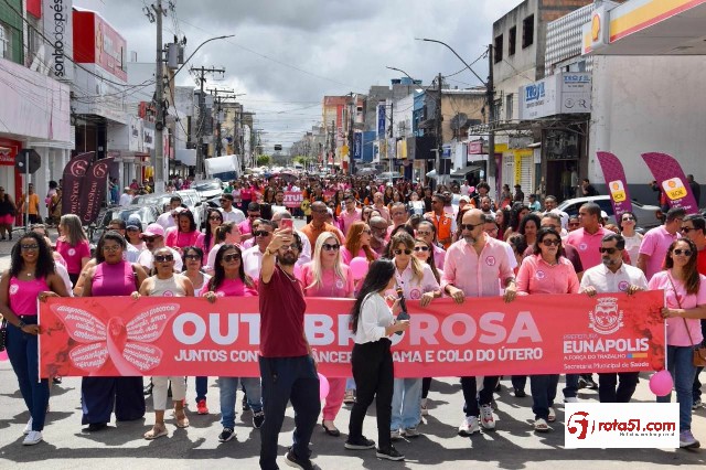 A Prefeitura de Eunápolis deu início, nesta sexta-feira (3), à Campanha Outubro Rosa com uma caminhada que reuniu servidores públicos, profissionais de saúde e moradores. A mobilização marcou o início de um mês dedicado à prevenção e conscientização sobre o câncer de mama e o câncer do colo do útero — duas das doenças que mais afetam mulheres em todo o Brasil.