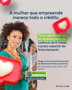 O programa Mulher Empreendedora é direcionado a diferentes segmentos, abrangendo profissionais como costureiras, artesãs, confeiteiras, dentistas e outras profissionais liberais que possuam CNPJ. O registro do CNPJ é feito de forma rápida, em apenas 15 minutos, facilitando o acesso das empreendedoras ao programa. Essa iniciativa faz parte do Programa Cidade Empreendedora, desenvolvido em parceria com o Governo do Estado e SEBRAE (Serviço Brasileiro de Apoio às Micro e Pequenas Empresas).