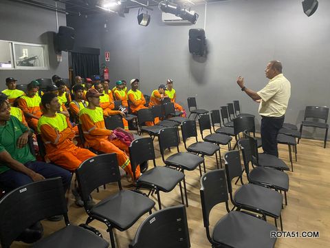 A ação – que ocorreu no auditório da Secretaria Municipal de Esporte, Juventude, Cultura e Lazer – contou com a presença de cerca de 30 profissionais da limpeza pública urbana, que trabalham na área de coletagem de lixo.