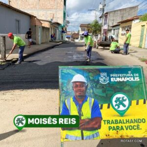 Equipes da Prefeitura Municipal de Eunápolis estão dedicadas à recuperação de vias no bairro Moisés Reis. Cerca de 10 ruas são beneficiadas, proporcionando melhorias significativas na infraestrutura local. Segundo o Secretário de Infraestrutura, Marcelo Vicente, a ação se estenderá para outros bairros, reafirmando o compromisso municipal com a melhoria da malha viária da cidade.