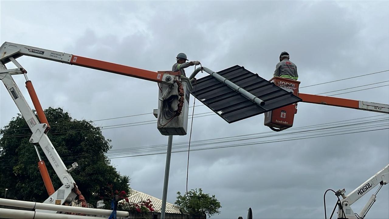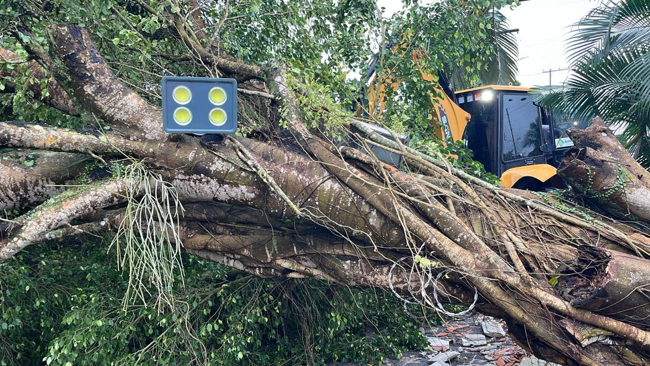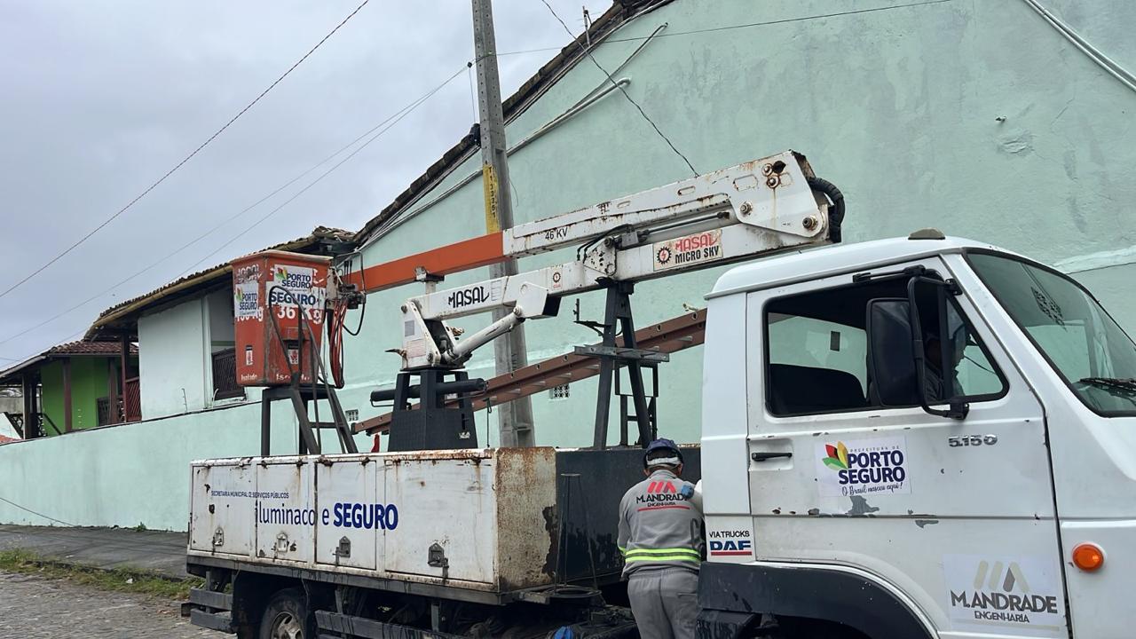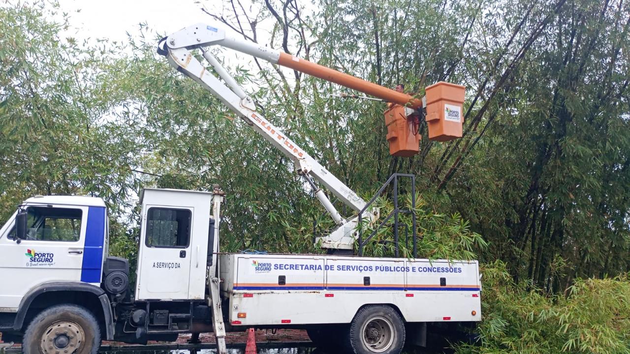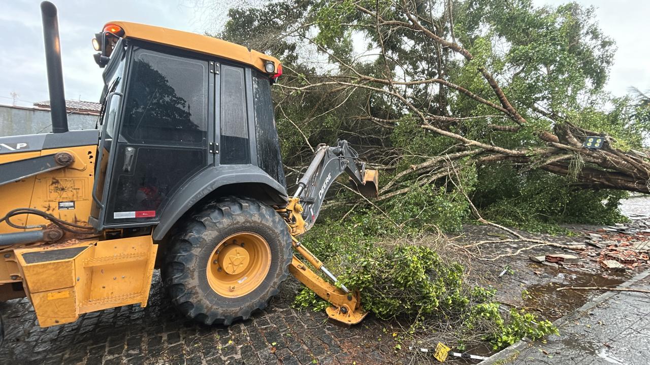 Em sistema de mutirão, as equipes atuaram na retirada de árvores, postes e placas caídos, além da limpeza de vias e apoio às áreas afetadas. O trabalho foi feito com máquinas e homens e se concentrou principalmente na Orla Norte, Centro, Frei Calixto e Arraial d’Ajuda, mas também chegou a outras localidades.