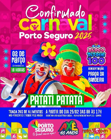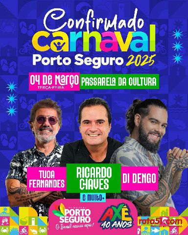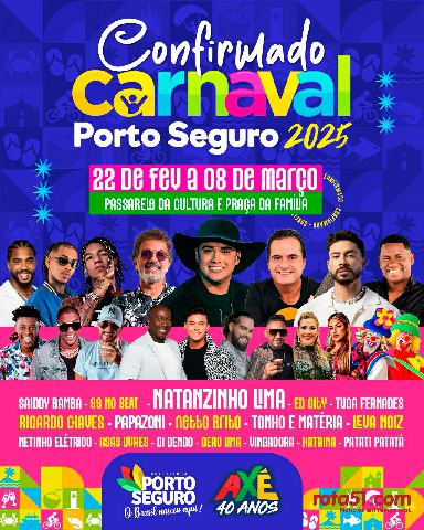 “Porto Seguro convida todo o mundo para curtir este Carnaval que homenageia o Axé Music e é a manifestação mais vívida do Carnaval Cultural. Com marchinhas, samba e muito axé, os blocos e a pipoca vão tomar conta da cidade”, destaca o prefeito, Jânio Natal.