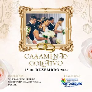 Com o objetivo de realizar sonhos e fortalecer as relações familiares, a Prefeitura de Porto Seguro, através da Secretaria Municipal de Assistência Social, irá promover o Casamento Coletivo, que está marcado para acontecer dia 15 de dezembro, na Cidade Histórica.