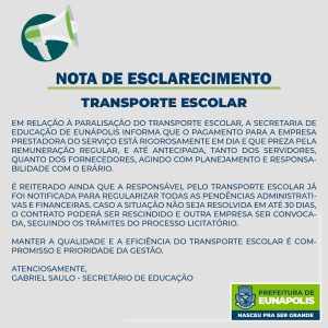 Com relação ao transporte escolar, a prefeitura, faz um esclarecimento a toda a população, referente ao mesmo.
