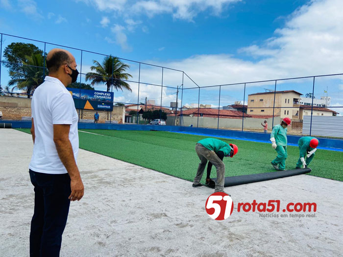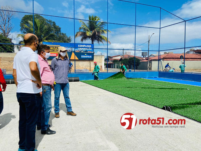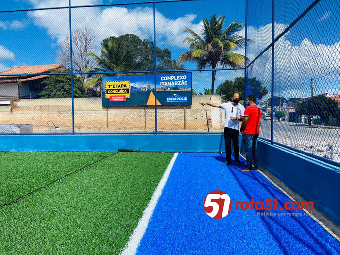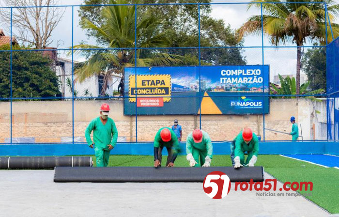 Na manhã desta terça-feira (21/07), com a presença do prefeito Robério Oliveira, equipes da Prefeitura de Eunápolis iniciaram a instalação da grama sintética do Complexo Esportivo Itamar Seixas, que está com sua obra em fase final. Um grande investimento para a juventude eunapolitana, no coração da cidade, o Itamarzão será o único espaço público de esporte da região a possuir campo society com gramado sintético de grande dimensão.
