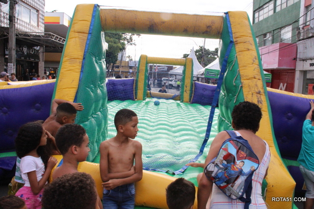 No local a simulação de uma pequena quadra de esportes, com basquete, futebol de salão, e tudo mais que possa dar às crianças um feliz final de domingo, incluindo uma roda de capoeira para crianças, e até bandas musicais em uma apresentação de incentivo ao mundo artístico para a criançada, e música é algo que contagia pequenos e grandes.