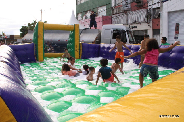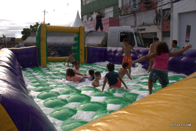 Foram pula pulas, escorregadores, e outros brinquedos, alguns deles a ar, para dar maior segurança às crianças de todas as idades.