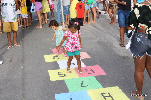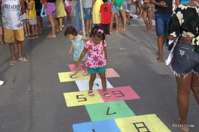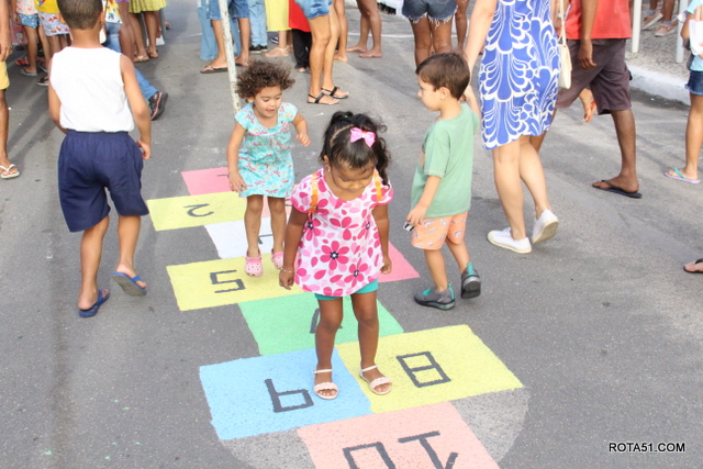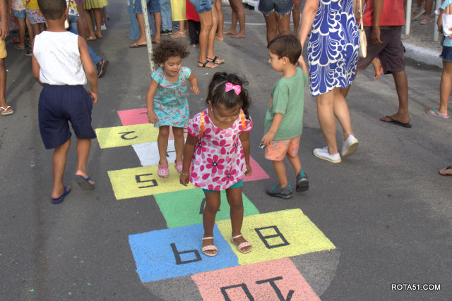 Vale a perna lembrar, que neste domingo 05/03, o público foi muito melhor, ou seja, com mais incidência de público, pois desta vez, pais e mães foram e, levaram seus filhos e, ao que parece o que mais chamou a atenção, foi a antiga brincadeira da famosa “amarelinha”, pois até algumas mães, se arriscaram de velhas lembranças.