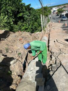 Já na Ladeira do Aeroporto, a equipe realizou a desobstrução e recuperação das estruturas existentes, garantindo maior eficiência no direcionamento da água da chuva. O local era um dos pontos que demandavam atenção devido ao volume de água que desce pela via em dias de forte chuva.