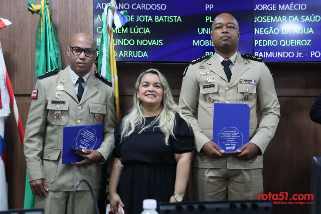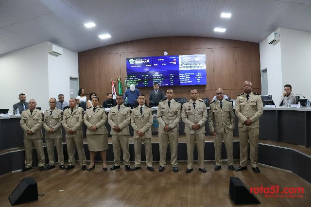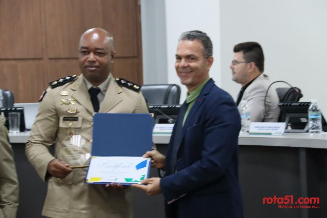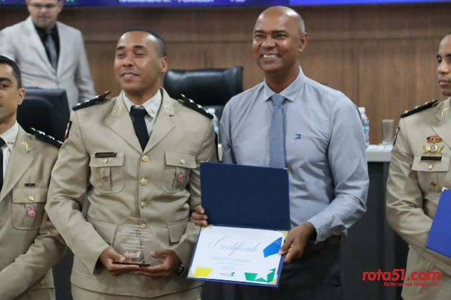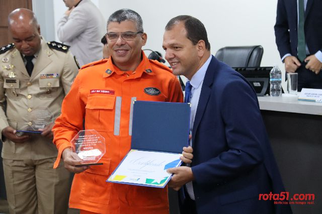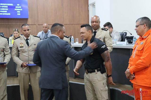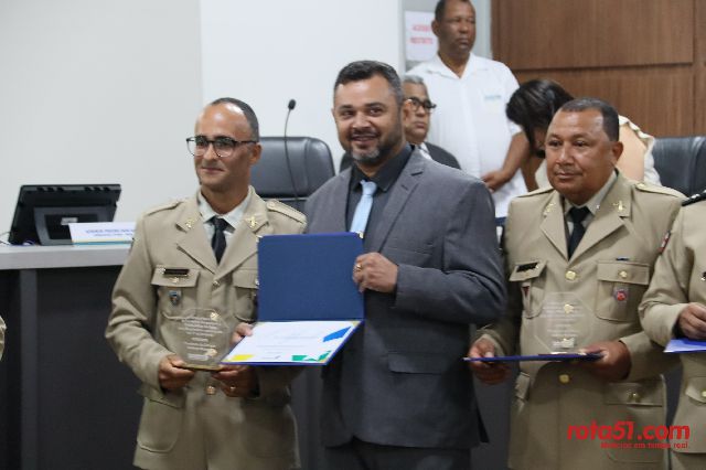 Por este trabalho constante e intermitente, por todos os bairros da cidade e em qualquer tempo, fez com que o presidente Valdiram, no início da sessão solene, fizesse um discurso, de homenagem a todos os policiais militares e bombeiros presentes ao evento, e junto dos demais 16 membros deste parlamento municipal, outorgasse a estes valorosos homens da segurança, estas comendas.