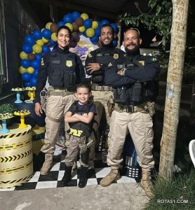 O mini admirador da PRF fez uma festa temática, com direito até a farda, e ficou muito contente com a nossa visita. 👦🏻