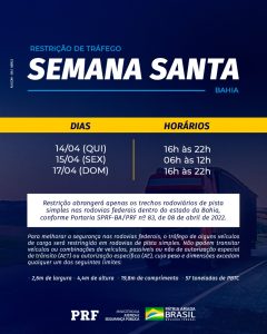 A Policia rodoviária Federal, faz um demonstrativo de como vai estar o trânsito na semana santa, por isto, publica um calendário especial para tráfego de caminhões e carros, nas rodovias federais.