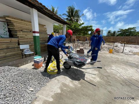As obras de reforma da Escola Municipal de Caraíva seguem em andamento. Devido às péssimas condições do prédio anterior, a construção precisou ser demolida e iniciada do zero, para que possa oferecer condições dignas e seguras de ensino aos alunos da comunidade.