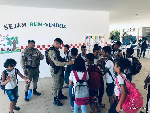 Os policiais militares do 8º Batalhão foram recepcionados com amabilidade e alegria, no perímetro das escolas e creches da cidade. Os alunos fizeram questão de cumprimentar cada um dos agentes da segurança pública.