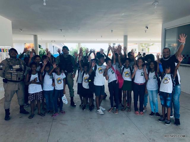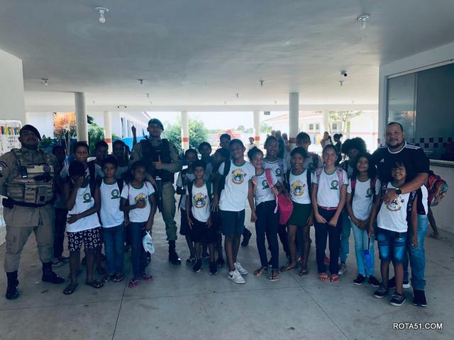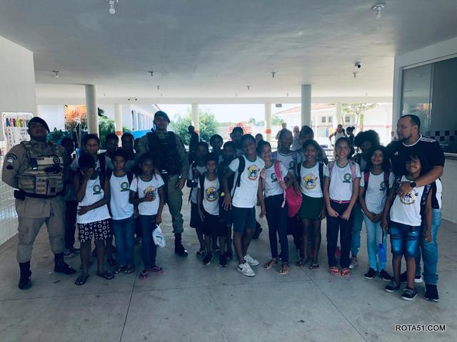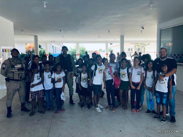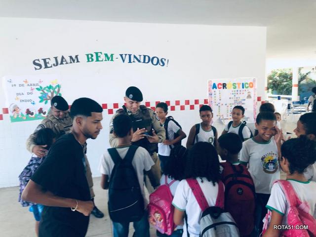 Na escola-creche Lucy Andrade Borges, as crianças ficaram encantadas com a presença dos policiais, que aproveitaram para explicar que a Polícia Militar é amiga e protege o cidadão.