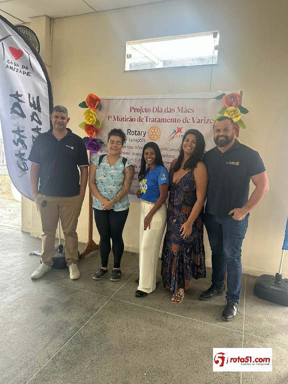Nos dias 03, 04 e 24 de maio, o Rotary Club de Eunápolis realizou o seu 1º mutirão de tratamento de varizes, beneficiando gratuitamente 45 mulheres de comunidade carente. A ação contou com a parceria do médico cirurgião vascular o Dr. José Roberto Júnior, além do apoio essencial da Prefeitura Municipal de Eunápolis e da Oralmed.