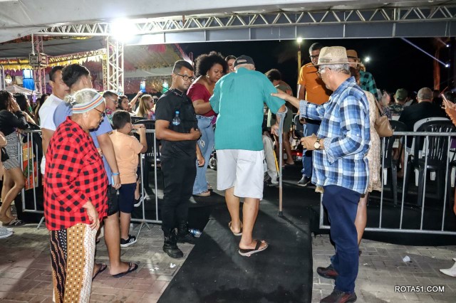 A noite também foi animada por Marcos Val, que trouxe sucessos populares para a multidão, além do Forró da Praia e Netinho do Forró, que aqueceram a galera com o envolvente pé-de-serra. O festival de quadrilhas foi um show à parte, com os talentosos grupos Cia Lágrima de Palhaço, Cia Balão de Ouro e Cia N&M encantando todos com suas performances coloridas e animadas.