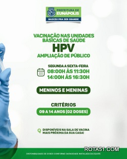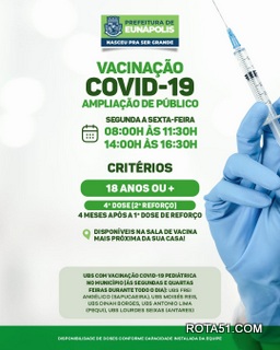 As imunizações estão disponíveis nas Unidades Básicas de Saúde com salas de vacinação ativas, das 8h às 11h30 e das 14h às 16h30.