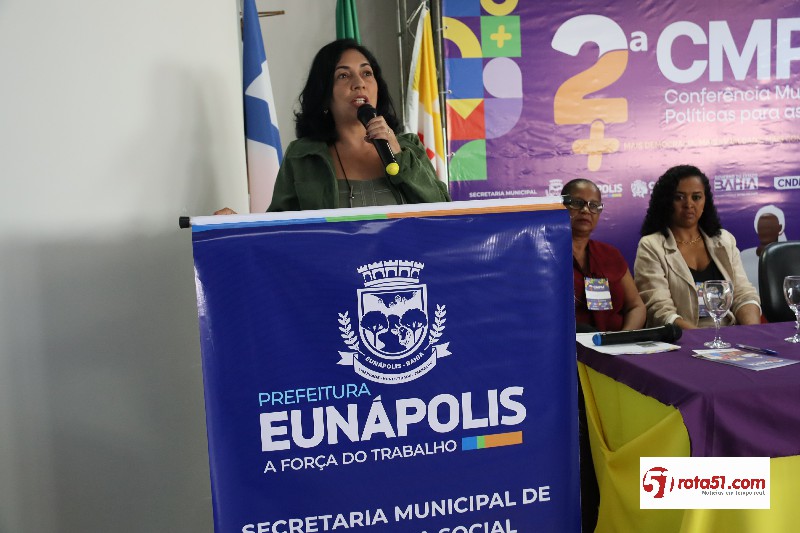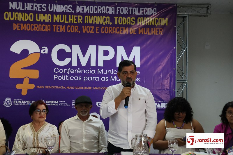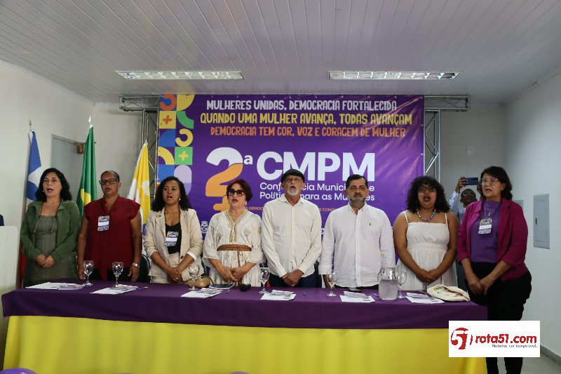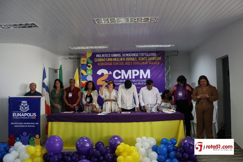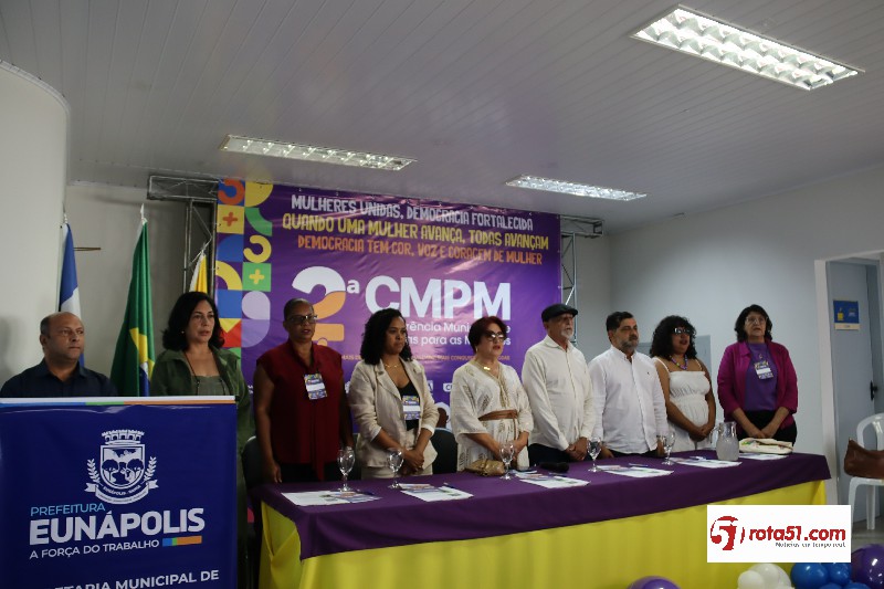 Para esta conferencia, estiveram presentes e compuseram a mesa, o presidente da câmara municipal Valdiram Marques, o vice prefeito Pr. Bené, a secretária de educação Jovita Lima, a secretária de ação social Maria Menezes, a presidente da OAB Dra. Kátia Taurinho, a advogada Dra. Luiziane Britto, a presidente do STTRR Maria das Graças, Francieleide Araujo, da comissão estadual da conferência de políticas para mulheres, e, Gabriela Borges de Souza mineira de Brasílias de Minas, a presidente do conselho municipal dos direitos da mulher de Eunápolis Dâmaris Souza Vieira Santos e a palestrante Daniela Paula dos Santos, porém antes de começarem as falas, foi pedido que todos ficassem de pé, para a execução do Hino Nacional.