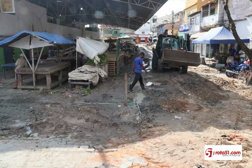 Os trabalhos começaram com os trabalhos da EMBASA, rebaixando a rede de água, e agora as máquinas já estão buscando acelerar todo serviço no local, começando pela área externa da feira. Segundo Robertinho os trabalhos irão remodelar toda a feira, pois o projeto já está totalmente pronto e aos poucos a feira do bueiro, será totalmente remodelada.