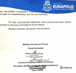 Secretaria de Meio Ambiente de Eunápolis notifica proprietários do Espaço Rondelli sobre a impossibilidade de shows no local