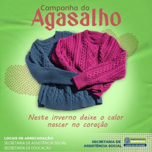 As secretarias de Assistência Social e Educação lançaram neste mês a Campanha do Agasalho 2022, com o tema “A Solidariedade Aquece um Coração”. O objetivo é arrecadar número expressivo de roupas e cobertores para serem destinados às famílias que estão em situação de vulnerabilidade social.