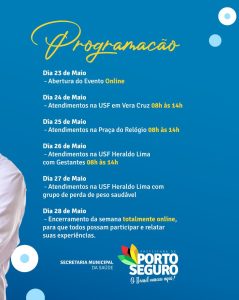 A Secretaria da Saúde de Porto Seguro, através da Equipe PICS da atenção básica, estará promovendo entre os dias 23 à 28 de Maio de 2022 o evento II Maio das PICS, o qual contará com rodas de conversa sobre as PICS , promoção do autocuidado , orientações sobre Aromaterapia, Floralterapia, bem como atendimentos em Auriculoterapia e Cromoterapia.