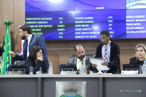 O presidente do legislativo, Jorge Maécio, fez uma clara explicação sobre a denúncia de superfaturamento de insumos hospitalares, dando conta de que, para colocar a denúncia em votação ele teria de atender ÀS NORMAS DA LEI, e do REGIMENTO INTERNO e a legislação federal, e que a denúncia, não pede ou fala, de cassação ou afastamento da prefeita, mas sim de uma investigação sobre a veracidade da denúncia, já que também o Ministério Público, já trabalha nesta investigação, portanto foi votado e ficou empatado a votação de acatamento da denúncia, a votação ficou empatada de 8 X 8, e neste caso, para o desempate, votou o presidente Jorge Maécio, como seu voto foi “sim”, a denúncia, vai ser estudada por uma comissão, formada pelos vereador Zé Carlos,. Valterlan e Tiago Mota.
