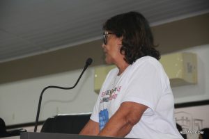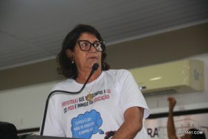 Na tribuna, antes dos vereadores, falou a presidente da APLB Sindicato, a professora Jovita, que conclamou aos vereadores o pedido de vistas, para que o projeto pudesse ser melhor avaliado, pois o que os professores municipais precisam é ser melhor valorizados, dentro do art. 214, e Ao mesmo tempo Jovita fez uma denúncia séria que muitas escolas estão sem banheiros, Janelas, e muitos outros equipamentos escolares, Jovita disse que o referido projeto é ilegal e que o salario de 4 mil não é o dado pelo governo.