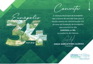 A Sessão Solene está marcada para esta quarta-feira, dia 11 de maio, às 18 horas, no auditório da Câmara Municipal de Eunápolis, no Bairro Dinah Borges.