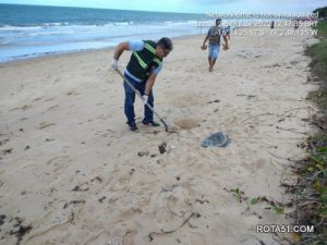 Segundo informações do denunciante que tentou salvar a vida da tartaruga, retirando-a do local, o animal apresentava desorientação e dificuldade para nadar, vindo para beira mar sem conseguir retornar, momento em que acionaram a fiscalização ambiental.