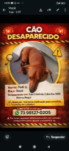 O cãozinho TODI sumiu e sua dona, está a sua procura, quem tiver informações favor se comunicar com Gilmara, telefone no post.