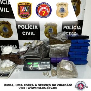 Após receber informações do DEIC da Polícia Civil sobre um local que homiziam indivíduos que praticam roubo de veículos as guarnições, juntamente com prepostos da Polícia Civil, deslocaram até o local, onde após adentrar no imóvel foram encontradas grande quantidade de entorpecentes. Todo material foi apreendido e apresentado na 1ª DT Eunápolis, pra que fossem tomadas as medidas cabíveis.