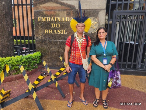 A ação internacional está com a equipe técnica, composta pela superintendente de Produto Turístico, Aline Rodrigues, e o cacique pataxó, Fred, levando a cultura e novidades para esse país do Mercosul.