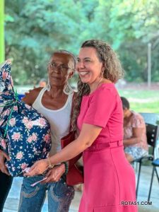 Em celebração ao Dia da Mulher, a prefeita Cordélia foi recebida calorosamente pela população satisfeita com as obras no Parque Ecológico Gravatá nesta sexta-feira (08). O momento incluiu interações afetuosas, abraços e a participação da prefeita na festividade organizada pela Secretaria de Assistência Social.