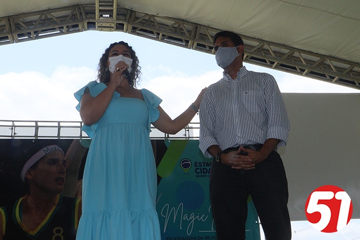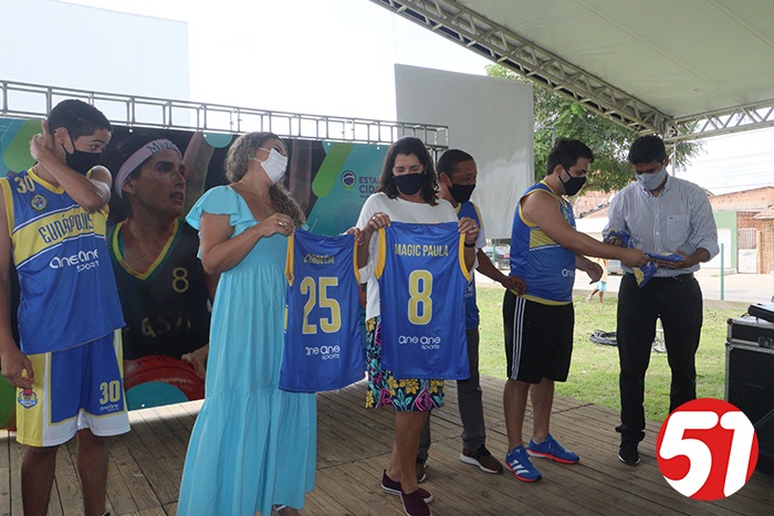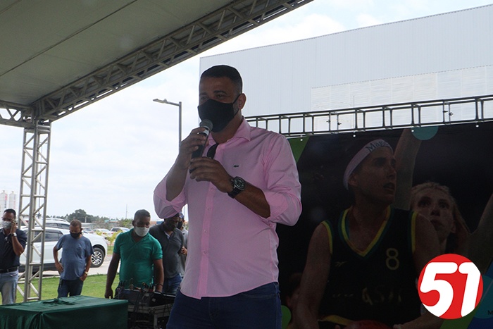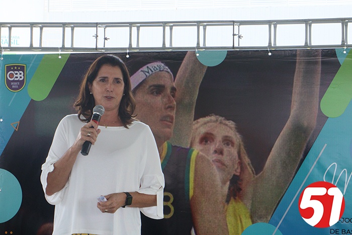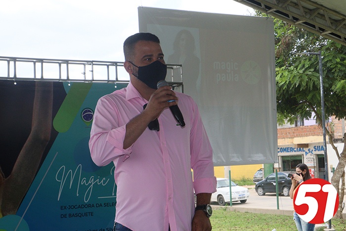 Primeiro falou o secretário de esportes, Leandro Lima, que agradeceu a presença de todos, flou d importância do esporte na vida de todos, e sobretudo enalteceu a presença da Magic Paula, por ter aceito o convite de ter falado para os novos e jovens jogadores de basquete.