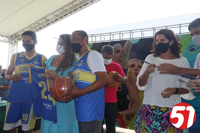 E no final, ela se deixou fotografar com jovens atletas, autografou bolas e camisas personali9zadfas e depois foi para a quadra da Estação Cidadania, onde fez arremessos e deu algumas instruções para todos que estiveram ao seu lado no interior da estação.