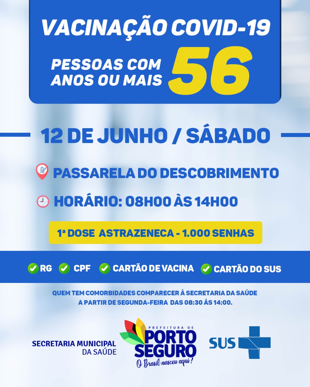 Comparecer à Secretaria de Saúde a partir de Segunda-feira 14/06 das 08h30 às 14h00