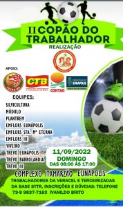 Será um encontro de trabalhadores na área rural, que neste evento estarão todos, além de buscar um lazer esportivo, irá também fazer a alegria de quem gosta de um bom domingo esportivo, uma realização do STTR – SINDICATO DOS TRBALHADORES E TRABALHADORAS RURAIS.