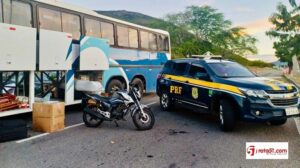 Na tarde desta quinta-feira (08), a Polícia Rodoviária Federal (PRF) apreendeu uma motocicleta com ocorrência de furto que estava sendo transportada no compartimento de bagagens de um ônibus interestadual. A ação ocorreu por volta das 17h, no km 677 da BR-116, no município de Jequié (BA), durante fiscalização de combate ao crime realizada por uma equipe do Grupo de Patrulhamento Tático (GPT) da PRF.