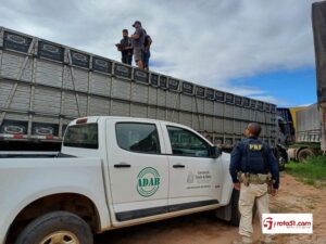 Na manhã desta quinta-feira (08), a Polícia Rodoviária Federal (PRF) flagrou o transporte irregular de 50 bovinos durante uma fiscalização de rotina no km 409 da BR-242, no município de Seabra, na Chapada Diamantina (BA).