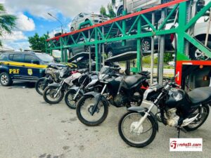 Uma fiscalização da Polícia Rodoviária Federal (PRF) realizada na tarde desta quinta-feira (08), na BR-116, em Jequié (BA), resultou na apreensão de cinco motocicletas com registro de furto. A ação ocorreu por volta das 13h40, no km 677 da rodovia, durante abordagem a um caminhão-cegonha que transportava diversos veículos.