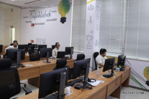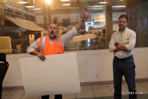 Depois de uma explicação técnica dentro dos parâmetros empresariais, a equipe conduziu o jornalismo, para o setor de embalagens, onde a fibra é cortada, embalada, embarcada e destinada ao TMB, Terminal Marítimo de Belmonte e, a partir daí para o porto de Santos.