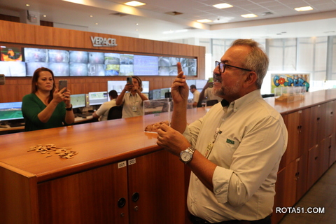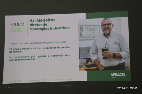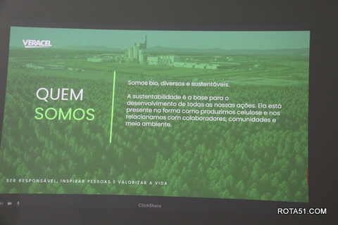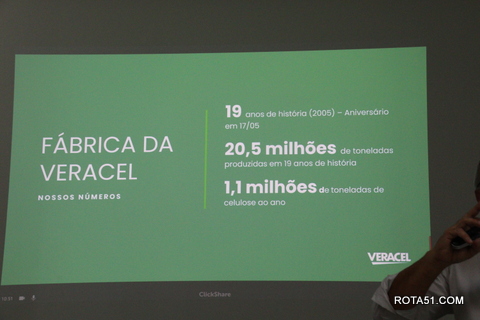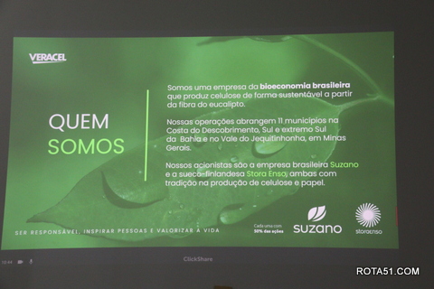 Durante toda a manhã, depois de uma apresentação formal, foi a vez do cafezinho, que sempre é servido com grande diversidade de guloseimas, para depois Ari Medeiros, iniciar toda uma apresentação da Veracel, desde a sua fundação até os dias atuais, quando a produção de fibra de celulose, depois de embarcada, vai para o terminal marítimo de Belmonte, vaio para o Porto se Santos e a partir daí, ganha as grandes produtoras de papel, desde papel higiênico até o famoso papel A4 ou chamex, como é conhecido.