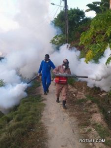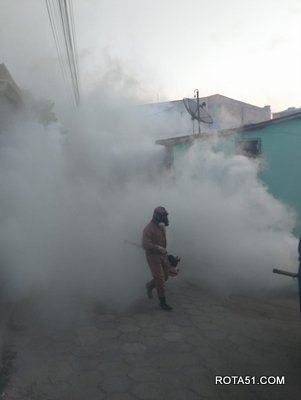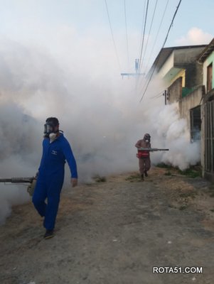 Durante as ações nos bairros e distritos, é realizado o bloqueio espacial, com a utilização de inseticidas, nas proximidades das residências identificadas com casos suspeitos.