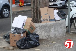 Todos os vereadores têm seus assessores, assessores de facebook, mas deixam a cidade, jogada as traças, como por exemplo o “Lixo”. O rota51.com saiu ás ruas mais uma vez, e fotografou lixo no centro da cidade, sendo colocado á tarde, é preciso que o diretor de lixo, seja competente para determinar um horário em que o lixo terá de ser colocado nas ruas, pois muitas lojas, colocam o lixo cedo e o vento espalha tudo pelas ruas, do centro e dos bairros.