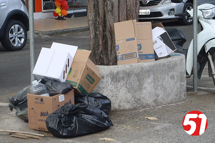 O lixo no centro da cidad3e é uma demonstração de falta de cultura e de competência; cultura de quem coloca o lixo à tarde e, de competência de quem não sabe resolver o problema, mas no final do mês, vão na boca do caixa pegar, como diz MM Souza, pegar o “caramingau”.
